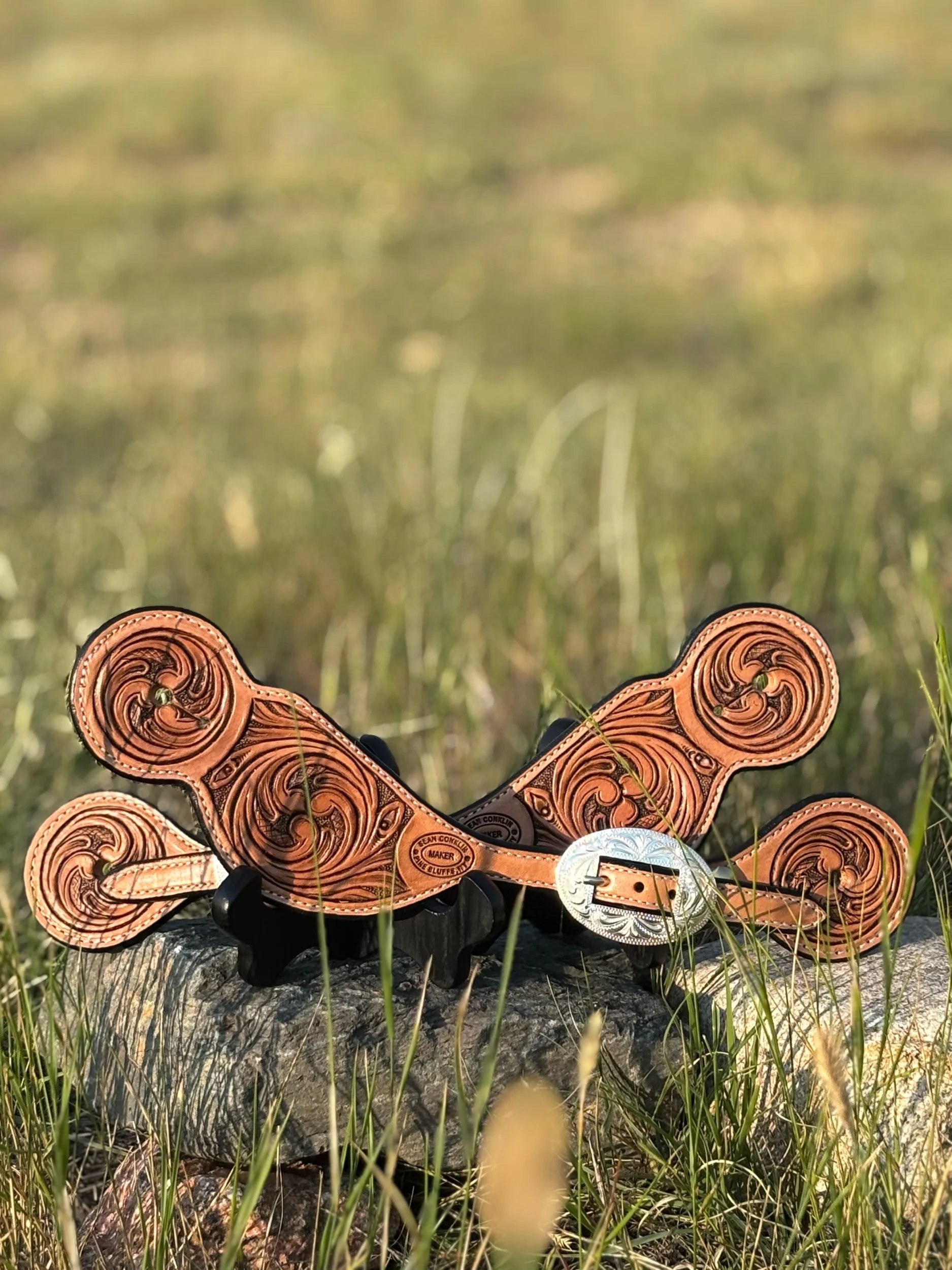 Shop › Floral Tooled Bib-style Spur Straps with Silver Overlaid Buckles Image 1 of 2 Image 2 of 2 Floral Tooled Bib-style Spur Straps with Silver Overlaid Buckles $240.00 Quantity: Purchase Added!